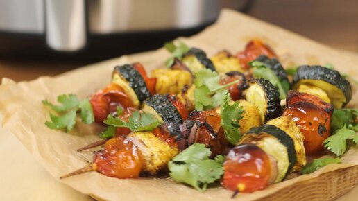 Шашлычки из куриной грудки с овощами в аэрогриле Kitfort KT-2221