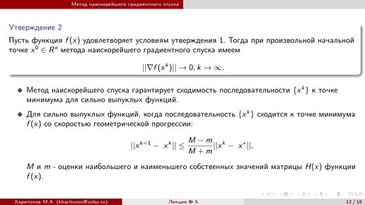 Методы оптимизации. Лекция № 5. Методы первого порядка. Часть 1