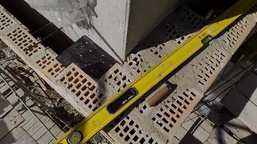 Облицовываем бетонный балкон. С монтировали закладные под столбы. Подвесная кирпичная кладка