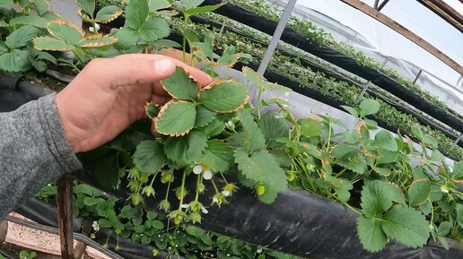 Клубника на стеллажах, как развиваются растения спустя 45 дней