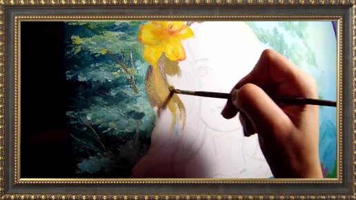 Портрет девушки в саду маслом на холсте.