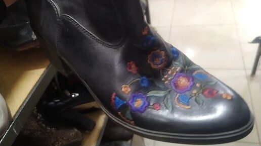 Попала на 50% скидку обуви в Секонд-хенде. Купила кожаные полусапожки с вышивкой за 145 р