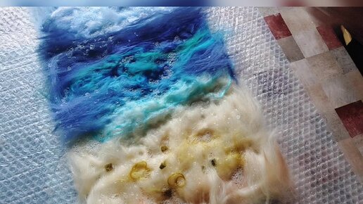 Панно на тему моря из остатков шерсти. Эффектная техника мокрое валяние.