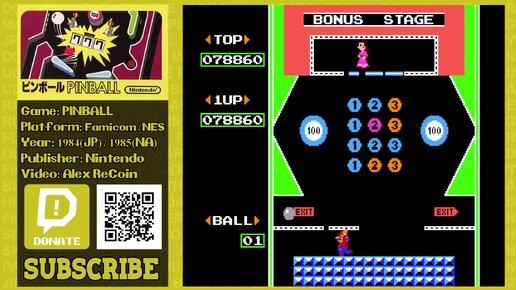 Pinball - Денди (Famicom NES) - 8 мин геймплея - Без фильтров - Alex ReCoin