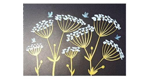 Зонтичные растения, как нарисовать маркерами на черной бумаге.
