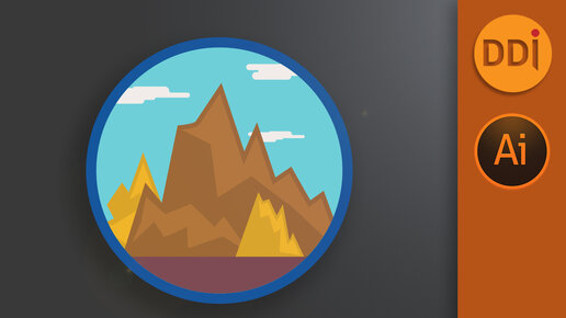 Как нарисовать эмблему, стикер с горами. Просто и быстро в векторном редакторе adobe illustrator, в плоском стиле.