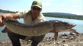 Трофейная щука на донку-летом в жару.