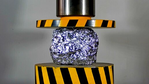 ГИДРАВЛИЧЕСКИЙ ПРЕСС ПРЕССУЕТ ФОЛЬГУ ДО СОСТОЯНИЯ ОДНОРОДНОГО АЛЮМИНИЯ