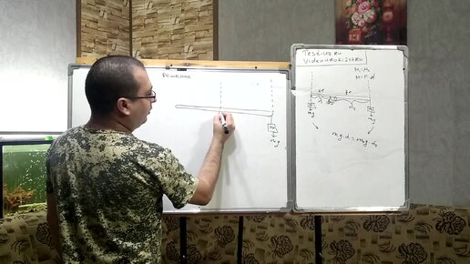 Тонкая однородная палочка шарнирно укреплена за верхний конец. Нижняя часть палочки погружена в воду, причем палочка расположена наклонно