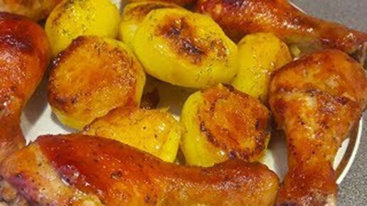 Вкусный ужин в духовке. Запеченная картошка и сочные куриные голени