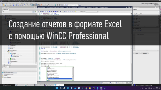 Создание отчетов в формате Excel с помощью WinCC Professional