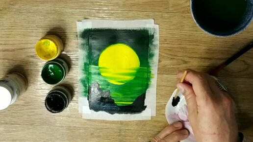 Дерево Луна Как нарисовать легко Paint a winter landscape Пейзаж гуашью для начинающих