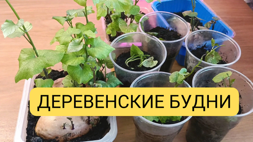 Деревенские будни. Черенкую батат. Лук порей. Куры, утки.