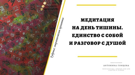 Медитация на День Тишины. Погружение в свой Внутренний мир. Разговор со своей Душой.