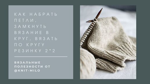 Набор петель на спицы, замыкание вязания в круг, вязание по кругу резинки 2*2