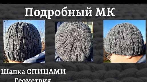 МК Шапка спицами Геометрия/Итальянский наборный край/Мужская шапка спицами МК/Вязаная шапка с узором
