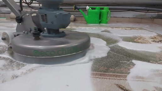 Зеленый ковер со светлым рисунком пострадал от прорыва трубы: зато не пришлось предварительно замачивать