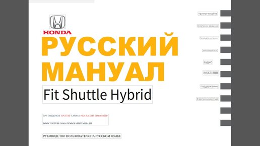 Русскоязычное руководство пользователя HONDA FIT SHUTTLE HYBRID