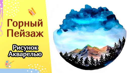 Как нарисовать ГОРНЫЙ ПЕЙЗАЖ акварелью. Закат в горах красками. Урок рисования для начинающих
