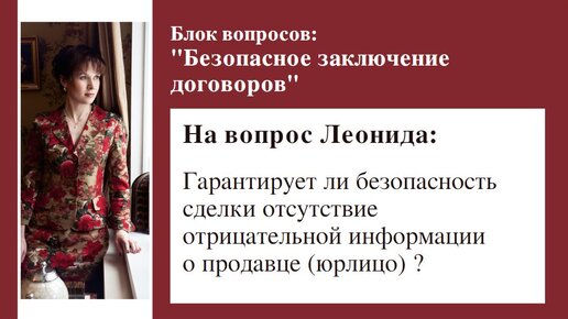 🔴 На вопрос Леонида: Гарантирует ли безопасность сделки отсутствие отрицательной информации о продавце (юрлицо) ?