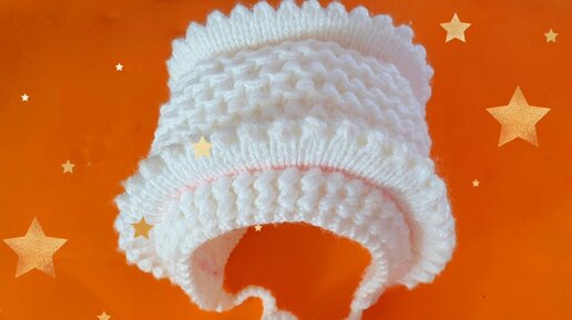 Шапочка-чепчик для Маленьких Принцесс!🌟Спицами (от 1 месяца до 3-ёх)
