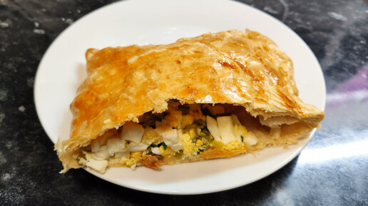 Вкусный пирог из слоеного теста. Пирог с яйцом и зеленым луком