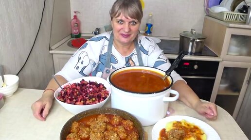 Меню на 2 дня! Готовлю простые ЭКОНОМНЫЕ Рецепты! Щи, Винегрет, Тефтели! Для большой СЕМЬИ!