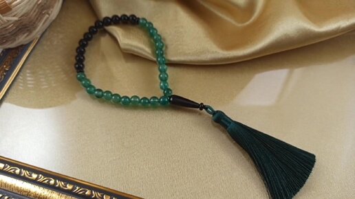Четки мусульманские из черного и зеленого агата 33 бусины, авторские