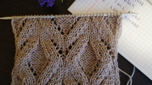 Узор ажурный" ромбы ". Вязание спицами .Обзор схемы и объяснение символов. Рапорт 16*32 + петля симметрии и 2 кромочный