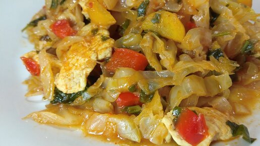 Вкусная тушеная капуста с куриной грудкой.Кулинария.