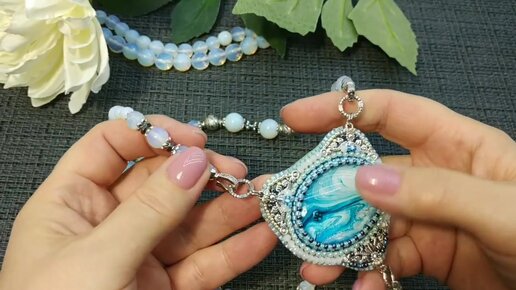 "ГОЛУБАЯ ЛАГУНА" Кулон на бусах Процесс Вышитый кулон+Ссылки на материалы Aliexpress 24.11.21. №82
