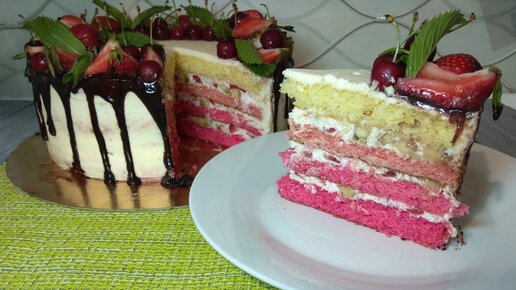 Влажный нежный бисквит.Цветной бисквит/коржи.Простой рецепт бисквита.
