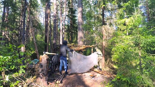 Строительство шалаша в лесу / часть 2