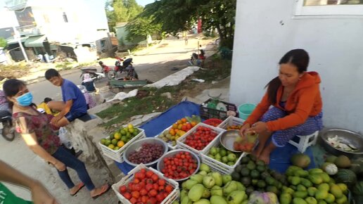 Сколько стоит наша покупка? Покупаем фрукты на рынке в рыбацкой деревне.