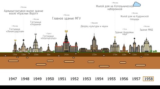 Сталинские высотки. Хронология строительства. Московские высотки. 7 Сталинских высоток.Инфографика