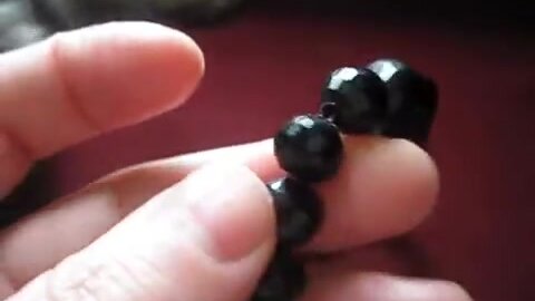 БУСЫ бусины 0,9 см. черное непрозрачное граненое стекло на леске с замком 44 см.