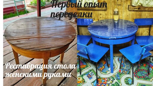 ПЕРЕДЕЛКА КРУГЛОГО СТОЛА ЖЕНСКИМИ РУКАМИ/РЕСТАВРАЦИЯ СТОЛА И СТУЛЬЕВ/ ПЕРВЫЙ ОПЫТ