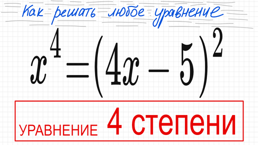 №9 Уравнение 4 степени x^4=(4x-5)^2 Уравнение со скобками 2 способа Формула сокращенного умножения Понизить степень уравнения