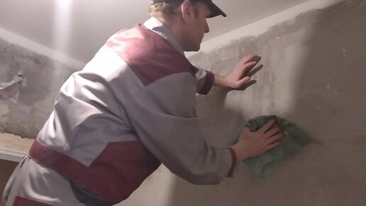 Подготовка к шпаклевки оштукатуренной стены - снято на видео. Ремонт коридора ч 12.