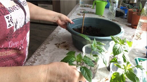 Уход за рассадой перца .Подсыпка земли , подкормка
