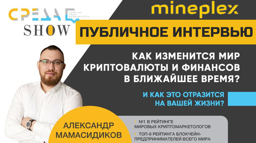 MinePlex | Мамасидиков о майнплекс, будущее крипторынка, регулирование и другое | Интервью Среда Шоу