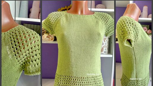 Маечка из полухлопка "Летняя свежесть". Кофточка спицами с коротким рукавом. Подробный МК.