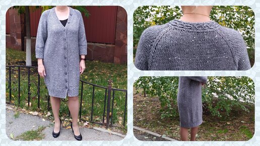 Кардиган «Капли дождя».Подробный МК.Реглан сверху с цельновязаной планкой.