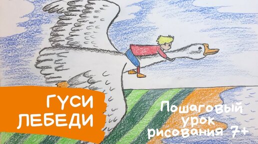 Гуси лебеди рисунок. Рисунок к сказке гуси лебеди нарисовать. Лебедь рисунок для детей. Карандаши и краски.