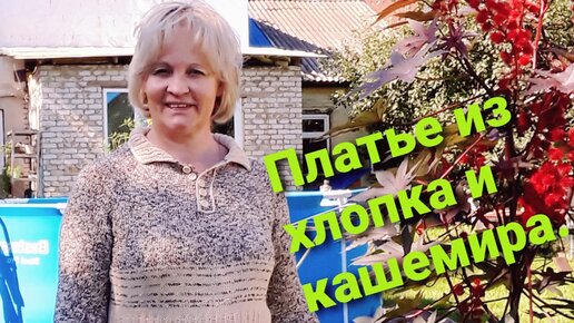 Платье из хлопка спицами, "Ванильный шоколад".С воротником "поло",реглан сверху.