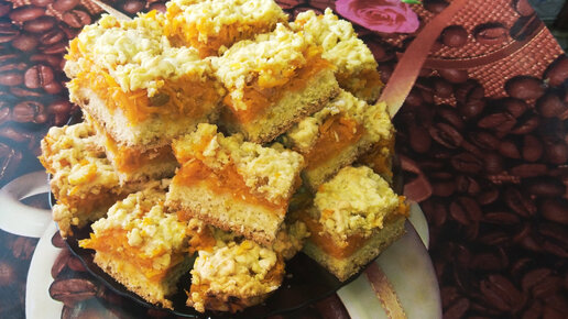 Сладкая выпечка для любителей тыквы. Вкусный тертый пирог с тыквенной начинкой