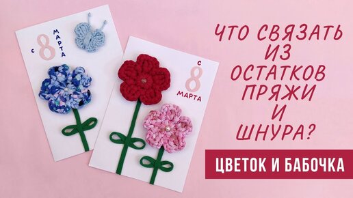 Открытка к 8 марта | Что связать из остатков пряжи и шнура? | Цветочек и бабочка крючком