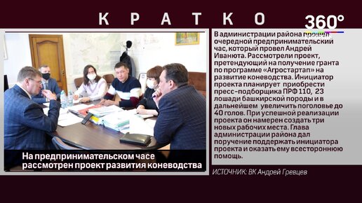 На предпринимательском часе рассмотрен проект развития коневодства