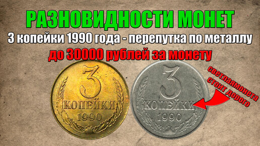 До 30000 рублей за 3 копейки 1990 года - перепутка по металлу