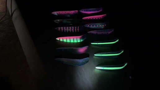 Свечение троллинговых блёсен от Mr. Musurok в темноте и при ультрафиолете